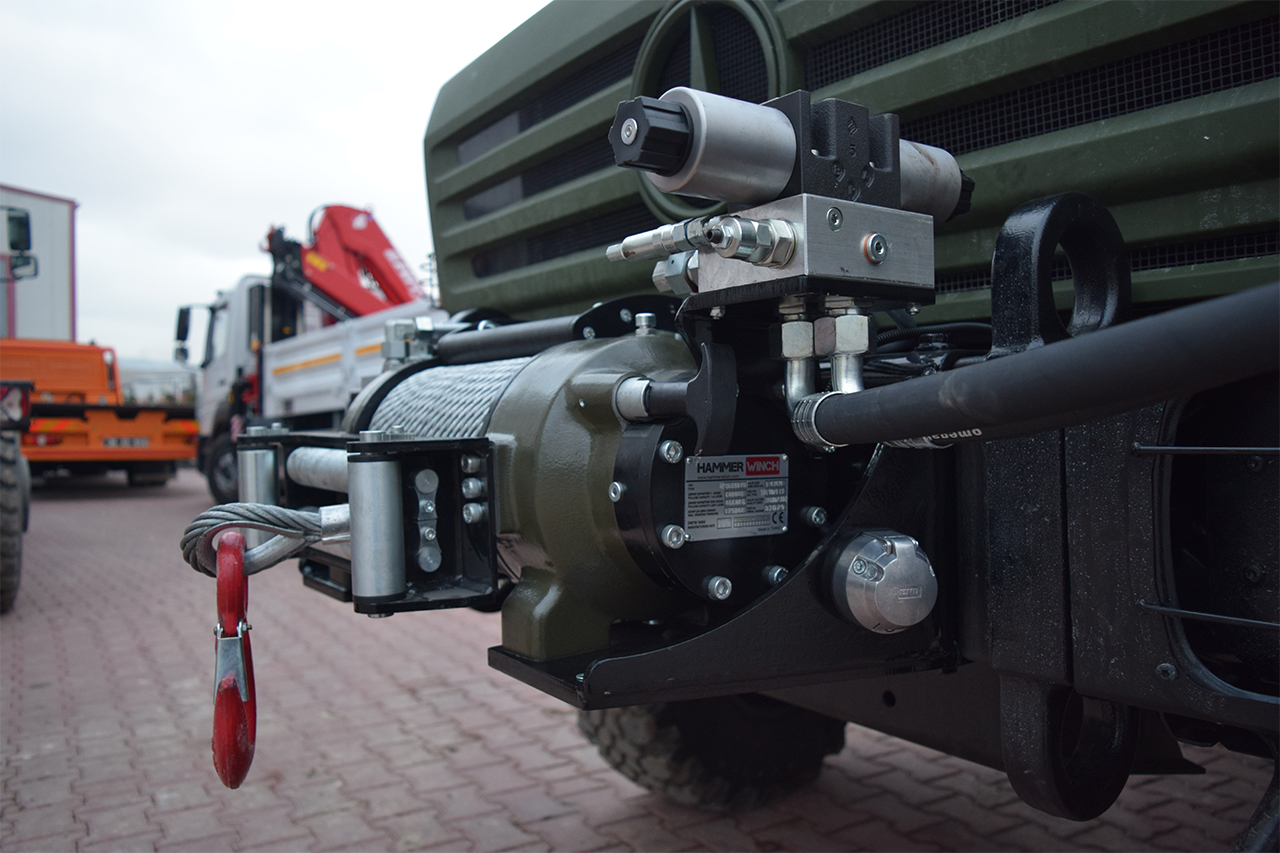Hammer Winch, askeri araçların ihtiyaç duyduğu yüksek çekme kapasitesini karşılamak amacıyla ileri seviye hidrolik mühendislik çözümleri geliştirmektedir. Sistemin kalbinde yer alan yüksek basınçlı hidrolik halat tamburları, en ağır tonajlı yüklerin dahi güvenle tahliye edilmesini sağlar. Uzun süreli operasyon kabiliyeti sunan askeri tip halat tamburları, dayanıklı gövde yapılarıyla en zorlu görevlere her zaman hazır olması için yüksek standartlarda üretilir. Hassas hız kontrol mekanizmaları sayesinde yük aktarımı sırasında operatöre maksimum denetim imkânı tanınarak operasyonel riskler minimize edilir.